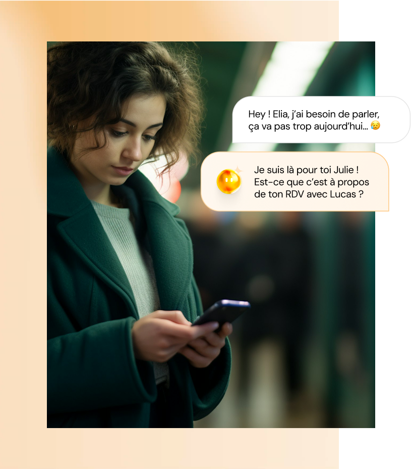 Besoin de conseils personnels ? Elia est là pour t'écouter et t'offrir des réponses adaptées à tes préoccupations. Un soutien discret et bienveillant, accessible à tout moment.