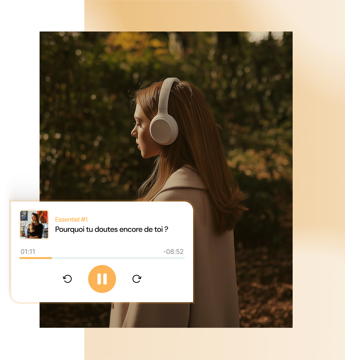 Écoute nos contenus partout, que ce soit dans les transports, en balade ou chez toi. Des conseils, des réflexions accessibles à tout moment pour t’accompagner au quotidien.